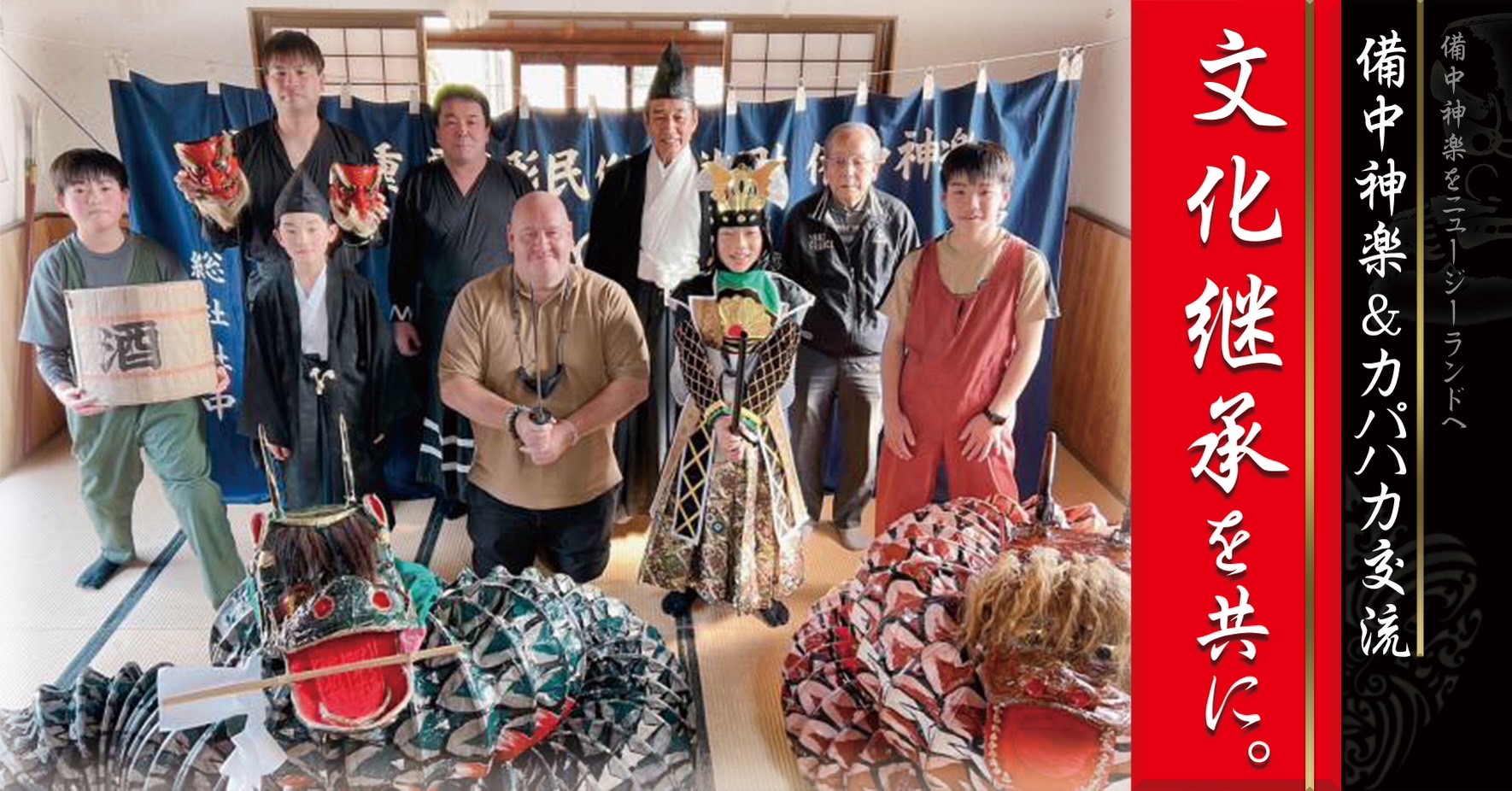 A Bicchū Kagura group is coming to Aotearoa to share their traditional Japanese performing arts with a Kapa Haka group Te Pao a Tahu in person.